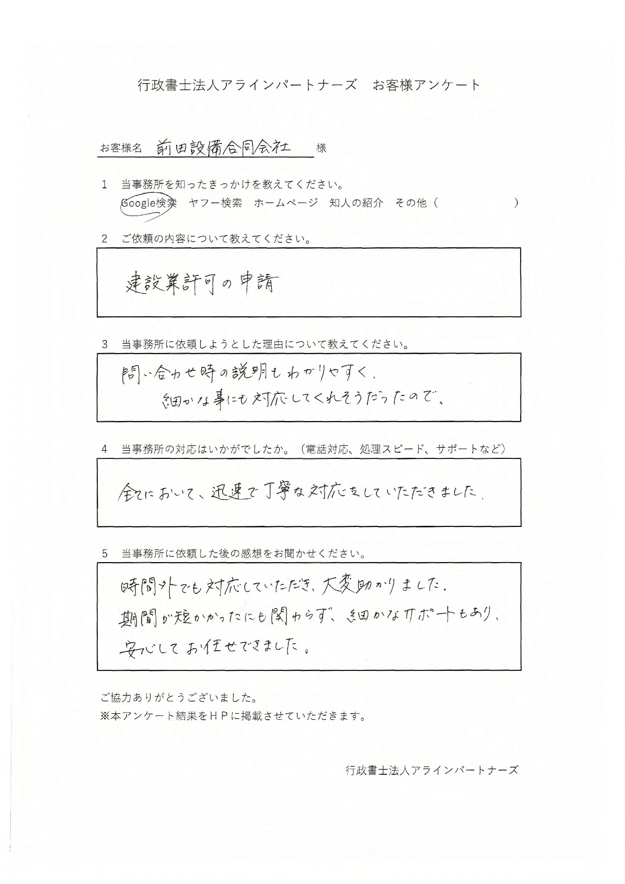 全てにおいて、迅速で丁寧な対応をしていただきました。