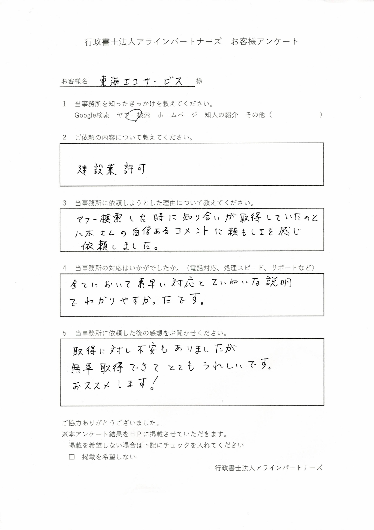 ヤフー検索した時に知り合いが取得していたのと、八木さんの自信あるコメントに頼もしさを感じ、依頼しました。